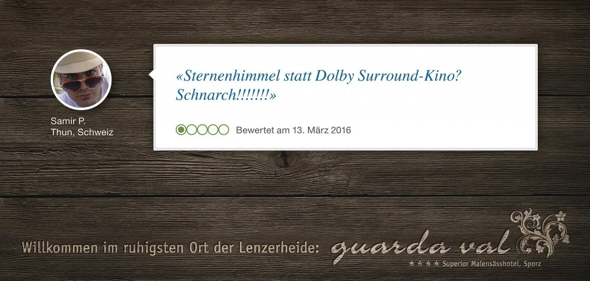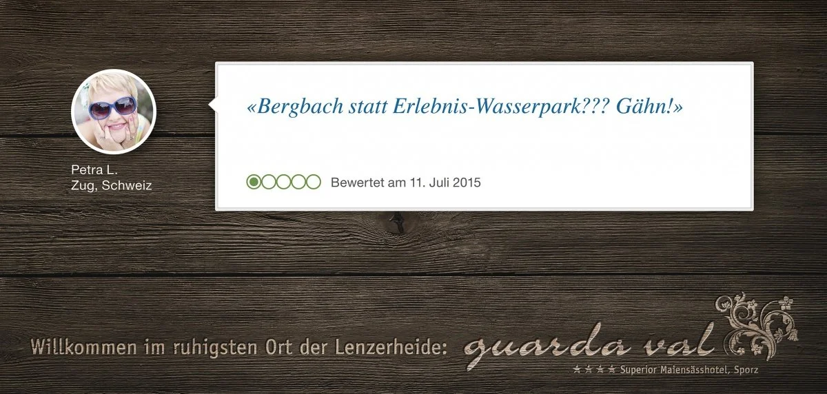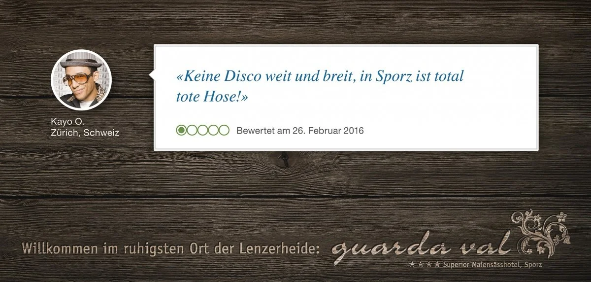 Das Maiensässhotel Guarda Val im Weiler Sporz oberhalb der Lenzerheide ist der richtige Ort für Menschen, die Ruhe und Erholung suchen. Und es ist der falscheste Ort für alle, die Party, Disco, Shopping und Action suchen.