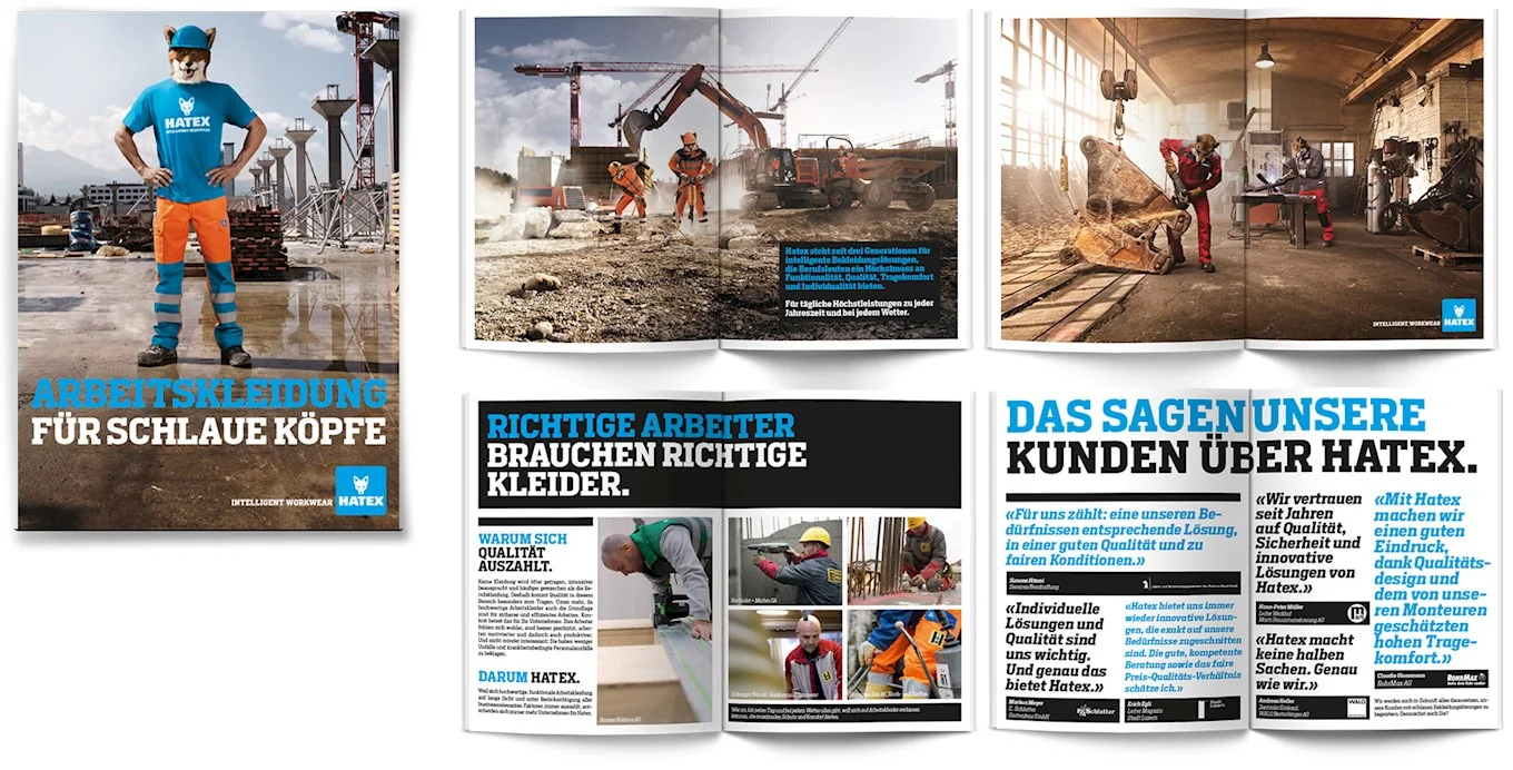 Hatex Workwear überzeugt mit innovativen Produkten und cleveren Details. Gemeinsam mit erdmannpeisker positionierten wir den führenden Schweizer Arbeitskleidungs-Hersteller deshalb als “Intelligent Workwear” und entwickelten mit dem Fuchs das passende aufmerksamkeitsstarke Key Visual dazu, das sich im Logo sowie in der Bildwelt und in diveren On- und Offline-Massnahmen wiederfindet.