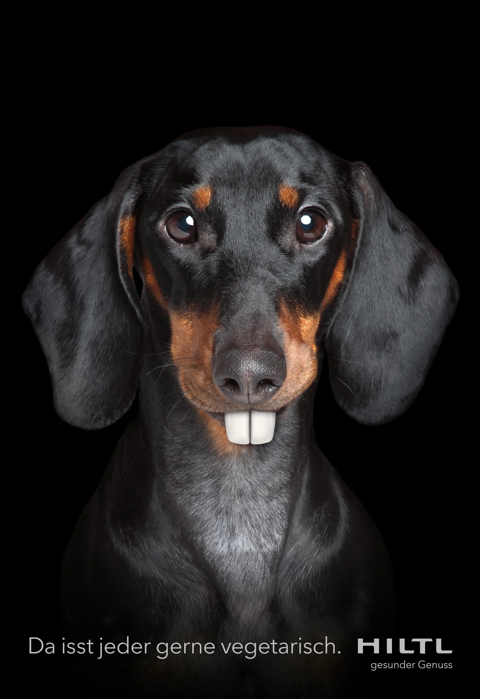 Fast schon legendär sind die zu Vegi-Fans konvertierten Fleischfresser. Die Hiltl-Besucher liebten diese Sujets und es gab mehrere Neuauflagen der erfolgreichen Kampagne.